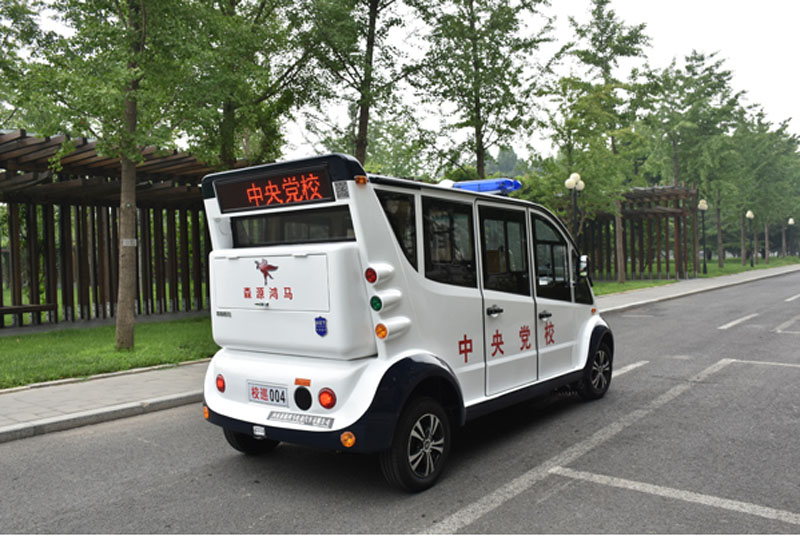 据介绍,此次中央党校配发的森源鸿马新能源公务车具有机动灵活、绿色环保等特点,适用于公安巡逻、校园、步行街、高尔夫球场、旅游景点、大型企业、机关单位、公园、娱乐场所、体育场馆、医院、疗养院、车站、机场、码头等领域的交通工具。